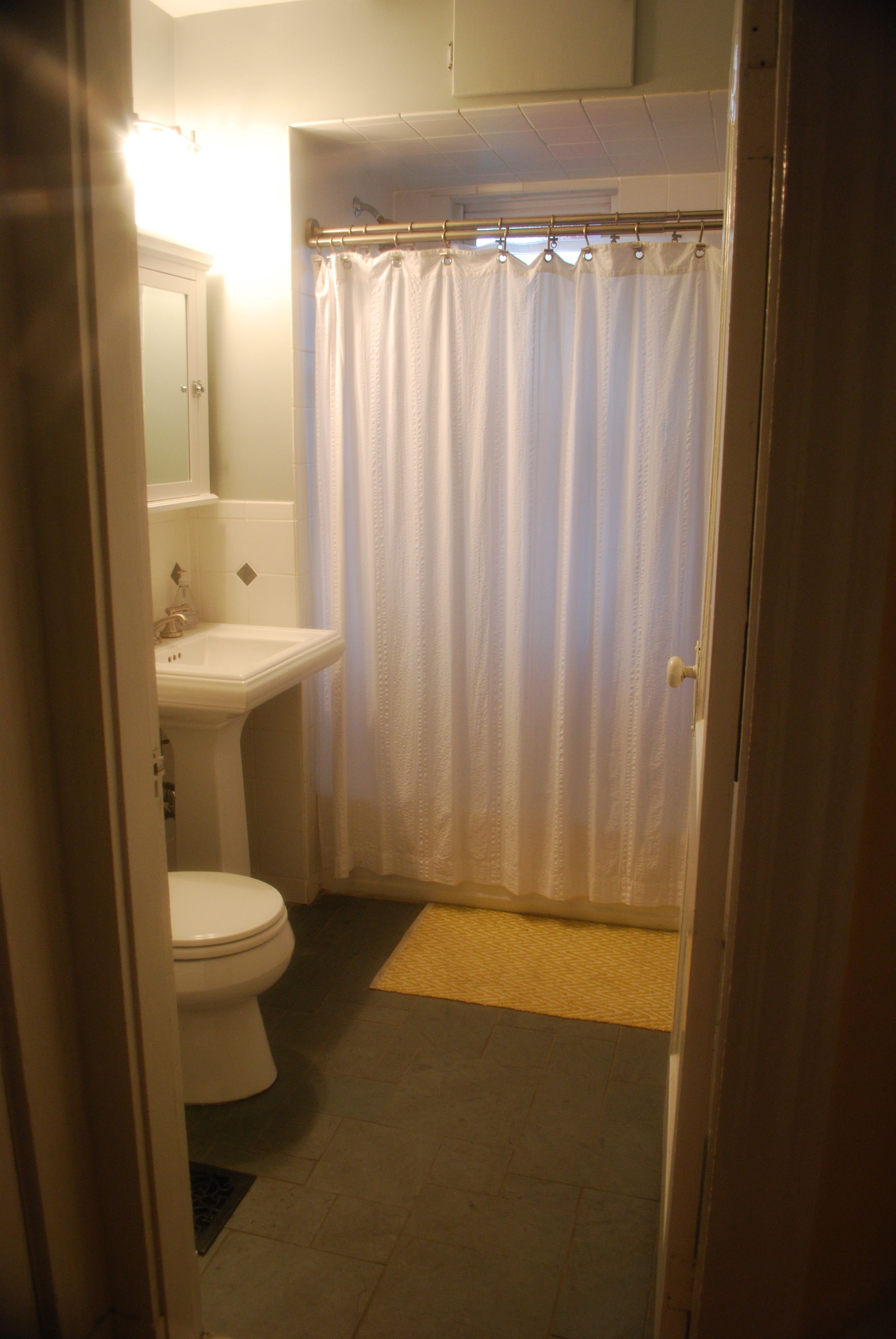 Something as simple as replacing your shower curtain can change the entire look of your bathroom (and give it a fresh update at a low cost). I picked up this $39.00 printed shower curtain from West Elm.