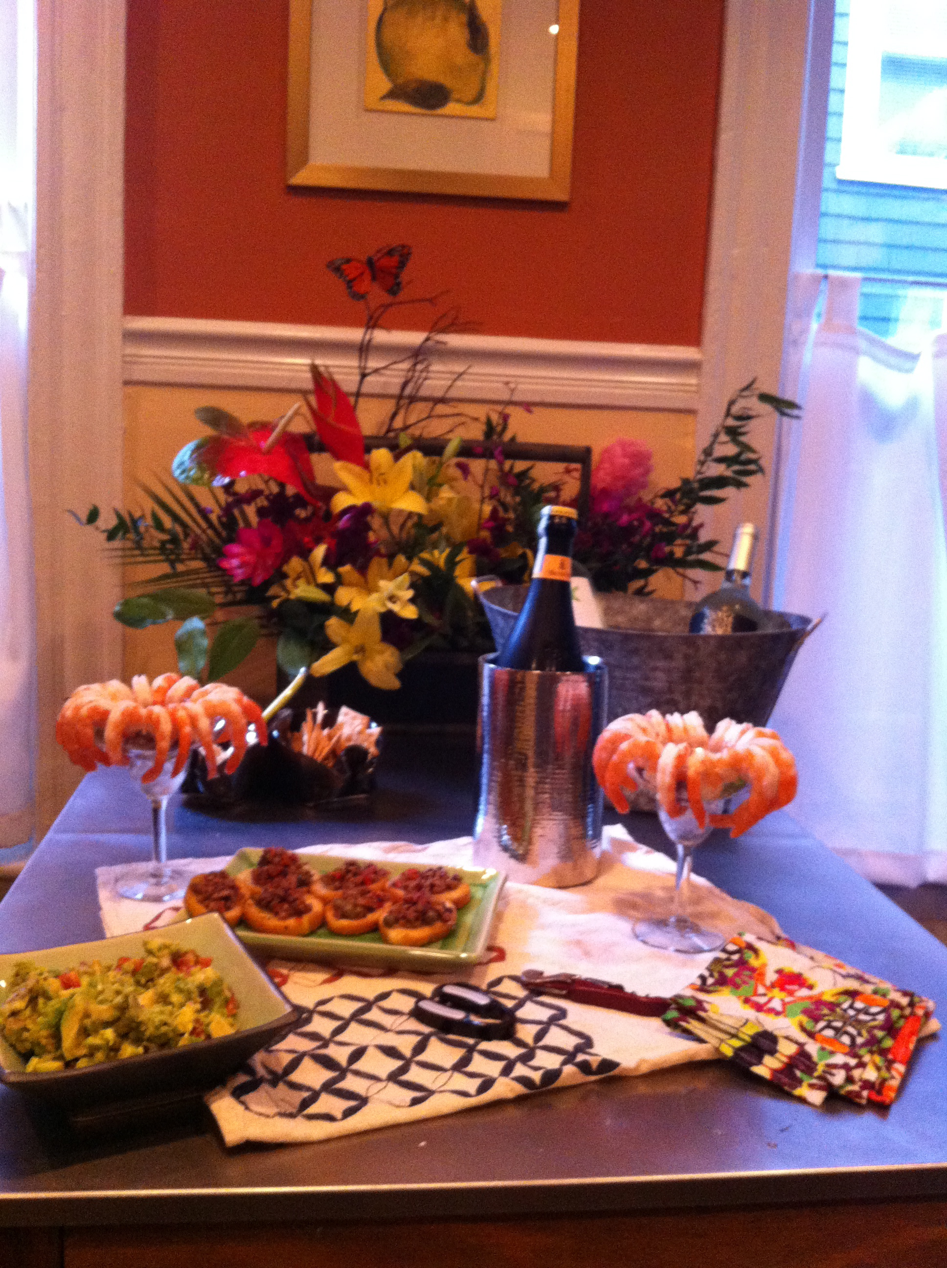 Margarita glasses are great for shrimp cocktail, add crushed ice and a small bowl of sauce in the middle.