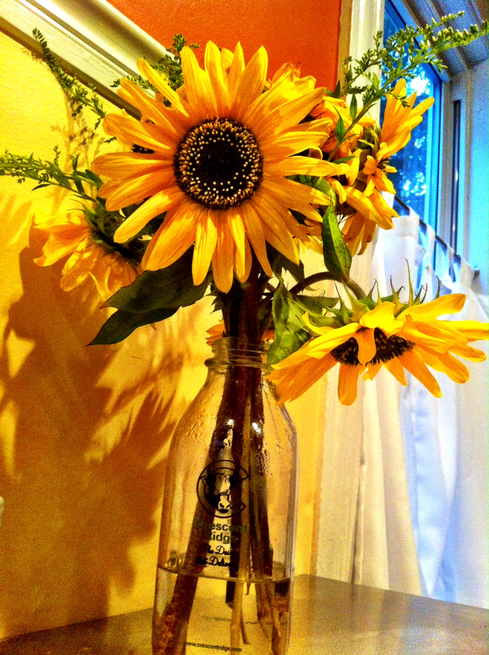 Be creative and use all different kinds of vessels for your blossoms like a pitcher, beer stein, mason jar or a recycled glass milk bottle…